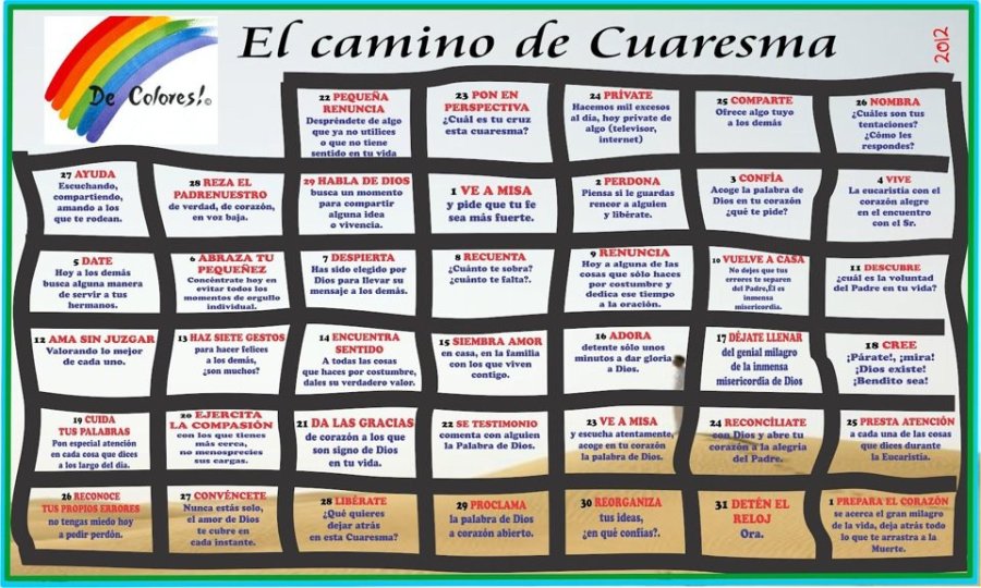 Os dejo este calendario de Cuaresma. Cada día un pasito …