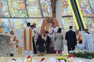 Familia, trabajo, fiesta: tres dones de Dios, tres dimensiones de nuestra existencia que han de encontrar un equilibrio armónico. Armonizar el tiempo del trabajo y las exigencias de la familia, la profesión y la paternidad y la maternidad, el trabajo y la fiesta, es importante para construir una sociedad de rostro humano. A este respecto, privilegiad siempre la lógica del ser respecto a la del tener: la primera construye, la segunda termina por destruir. Es necesario aprender, antes de nada en familia, a creer en el amor auténtico, el que viene de Dios y nos une a él y precisamente por eso «nos transforma en un Nosotros, que supera nuestras divisiones y nos convierte en una sola cosa, hasta que al final Dios sea “todo para todos” (1 Co 15,28)» (Enc. Deus caritas est, 18). Amén.
