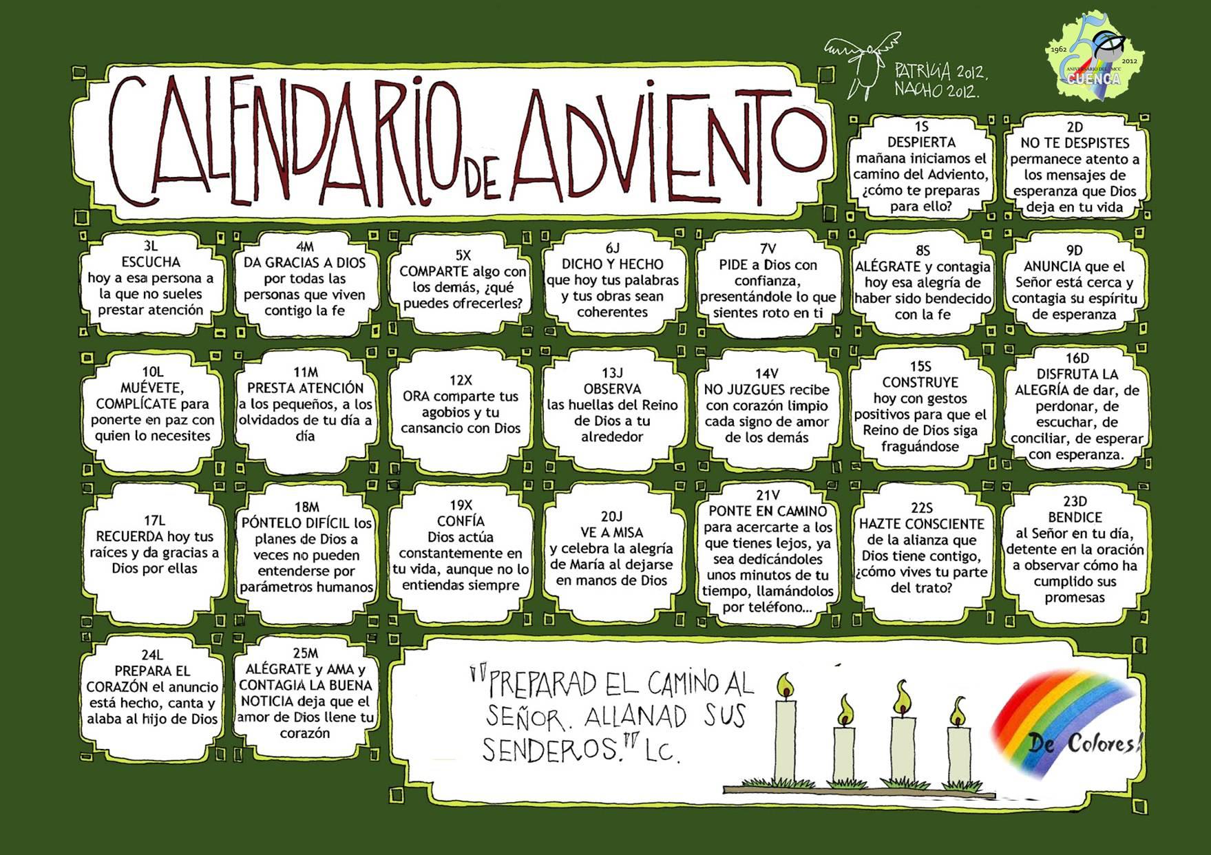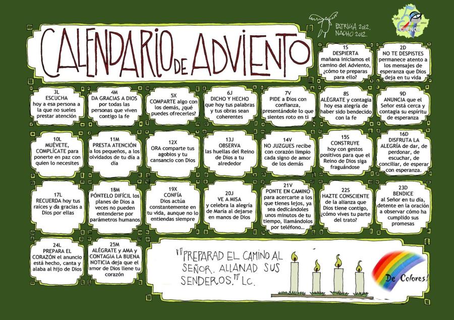 Aquí os dejo este calendario de Adviento para que nos ayude a prepararnos a la NAVIDAD.