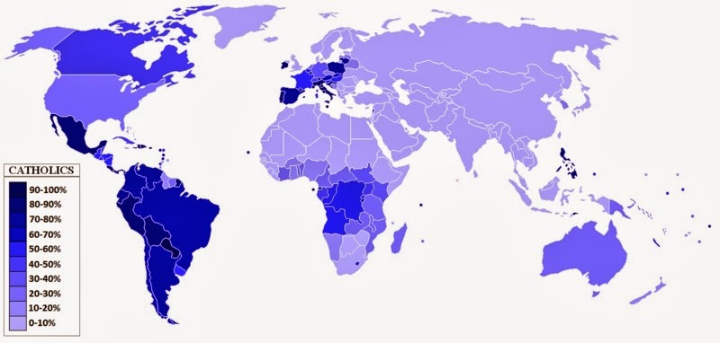 El porcentaje de los católicos ha crecido globalmente del 0,04% (el mismo incremento del año anterior) situándole al 17,50%. Con respecto a los continentes, se han registrado aumentos en África (+ 0,35), Asia (+ 0,03) y Oceanía (+0,1), mientras que han disminuido levemente en América (-0,09) y Europa (-0,02).