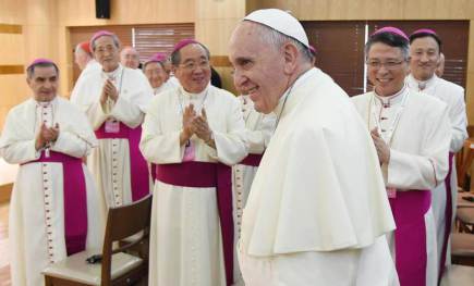 Los saludo afectuosamente y agradezco a Mons. Peter U-il Kang las fraternas palabras de bienvenida que me ha dirigido en nombre de todos. Es una bendición para mí estar aquí y conocer personalmente la vitalidad de la Iglesia coreana. A ustedes, como Pastores, corresponde la tarea de custodiar el rebaño del Señor. Son los custodios de las maravillas que él realiza en su pueblo. Custodiar es una de las tareas confiadas específicamente al Obispo: cuidar del Pueblo de Dios. Como hermano en el Episcopado, me gustaría reflexionar hoy con ustedes sobre dos aspectos centrales del cuidado del Pueblo de Dios en este país: ser custodios de la memoria y de la esperanza.