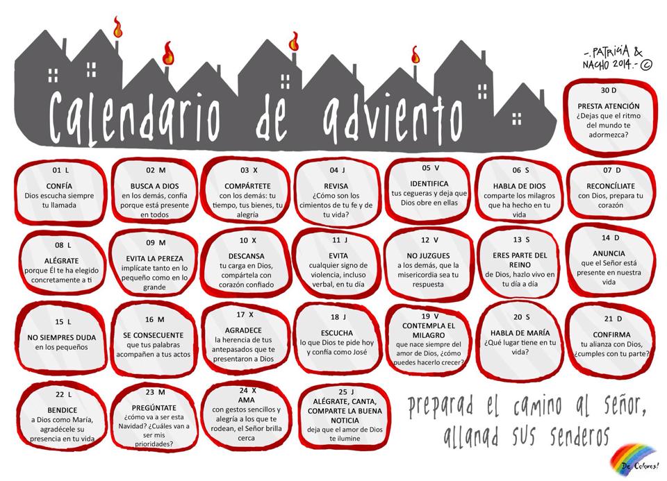 Calendario de Adviento 2014 25Nov 201425 Nov 2014Añadir un comentario Para que vivamos un Adviento diferente, os proponemos este calendario de Adviento. Movimiento de Cursillos de Cristiandad Cuenca Ver la entrada originalComparte esto: Haz clic para enviar un enlace por correo electrónico a un amigo (Se abre en una ventana nueva) Correo electrónico Haz clic para compartir en Facebook (Se abre en una ventana nueva) Facebook Haz clic para compartir en X (Se abre en una ventana nueva) X Haz clic para compartir en LinkedIn (Se abre en una ventana nueva) LinkedIn Haz clic para compartir en Telegram (Se abre en una ventana nueva) Telegram Haz clic para compartir en WhatsApp (Se abre en una ventana nueva) WhatsApp Más Haz clic para imprimir (Se abre en una ventana nueva) Imprimir Me gusta Cargando... Relacionado