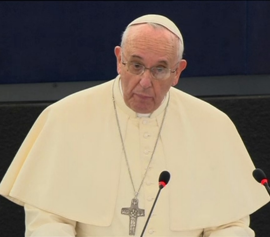 Queridos Eurodiputados, ha llegado la hora de construir juntos la Europa que no gire en torno a la economía, sino a la sacralidad de la persona humana, de los valores inalienables; la Europa que abrace con valentía su pasado, y mire con confianza su futuro para vivir plenamente y con esperanza su presente. Ha llegado el momento de abandonar la idea de una Europa atemorizada y replegada sobre sí misma, para suscitar y promover una Europa protagonista, transmisora de ciencia, arte, música, valores humanos y también de fe. La Europa que contempla el cielo y persigue ideales; la Europa que mira y defiende y tutela al hombre; la Europa que camina sobre la tierra segura y firme, precioso punto de referencia para toda la humanidad.