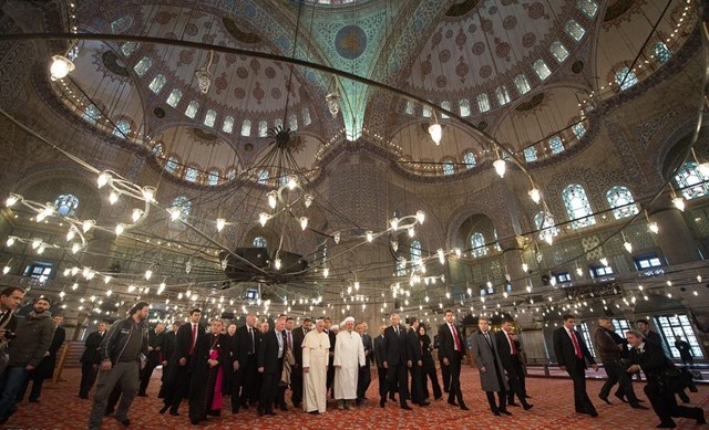 Hoy, en una intensa jornada, el Papa Francisco se trasladó de la capital, Ankara a Estambul. Donde fue recibido por el Patriarca Ecuménico Bartolomé I y las autoridades de esa ciudad. A su llegada visitó la Mezquita del Sultán Ahmed, mejor conocida como la “Mezquita Azul”, donde fue recibido por el Gran Muftí y un imán, con ellos visitaron la Mezquita y tuvieron un momento de meditación.