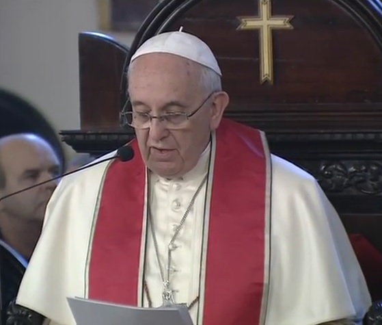 Así pues, no es casualidad que el camino de la reconciliación y de paz entre católicos y ortodoxos haya sido de alguna manera inaugurado por un encuentro, por un abrazo entre nuestros venerados predecesores, el Patriarca Ecuménico Atenágoras y el Papa Pablo VI, hace cincuenta años en Jerusalén, un acontecimiento que Vuestra Santidad y yo hemos querido conmemorar encontrándonos de nuevo en la ciudad donde el Señor Jesucristo murió y resucitó.
