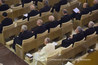 El Santo Padre Francisco junto con los superiores de la Curia Romana tuvieron ayer la segunda jornada de ejercicios espirituales, en la localidad de Ariccia, dirigidos por el Padre Bruno Secondin, que propone una lectura pastoral del profeta Elías sobre el tema “Servidores y profetas del Dios viviente”.