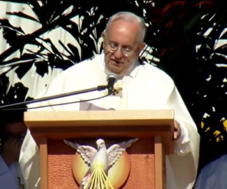 Hemos venido desde distintos lugares, regiones, poblados, para celebrar la presencia viva de Dios entre nosotros. Salimos hace horas de nuestras casas y comunidades para poder estar juntos, como Pueblo Santo de Dios. La cruz y la imagen de la misión nos traen el recuerdo de todas las comunidades que han nacido en el nombre de Jesús en estas tierras, de las cuales nosotros somos sus herederos.