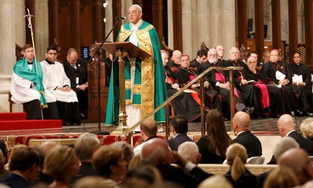 Esta bella Catedral de San Patricio, construida a lo largo de muchos años con el sacrificio de tantos hombres y mujeres, es símbolo del trabajo de generaciones de sacerdotes, religiosos y laicos americanos que han contribuido a la edificación de la Iglesia en los Estados Unidos. Son muchos los sacerdotes y consagrados de este País que, solo en el campo de la educación, han tenido un papel fundamental, ayudando a los padres en la labor de dar a sus hijos el alimento que los nutre para la vida. Muchos lo hicieron a costa de grandes sacrificios y con una caridad heroica. Pienso, por ejemplo, en santa Isabel Ana Seton, cofundadora de la primera escuela católica gratuita para niñas en los Estados Unidos, o en san Juan Neumann, fundador del primer sistema de educación católica en el País.