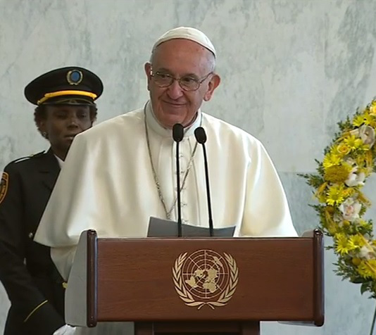 Con ocasión de mi visita a las Naciones Unidas, me alegro de poder saludarles a ustedes, hombres y mujeres, que son, en muchos aspectos, la columna vertebral de esta Organización. Les agradezco su acogida, y por todo lo que han hecho para preparar mi visita. Les pido también que hagan llegar mi saludo a los miembros de sus familias y a sus compañeros que no han podido estar hoy con nosotros.