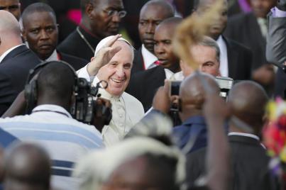 En este momento en que la República Centroafricana se encamina, poco a poco y a pesar de las dificultades, hacia la normalización de su vida social y política, piso por primera vez esta tierra, siguiendo los pasos de mi predecesor san Juan Pablo II. Vengo como peregrino de la paz, y me presento como apóstol de la esperanza. Por este motivo, felicito a las diversas autoridades nacionales e internacionales, con la Jefa del Estado de Transición a la cabeza, por los esfuerzos que han realizado para dirigir el país en esta etapa. Deseo ardientemente que las diferentes consultas nacionales, que se celebrarán en las próximas semanas, permitan al país entrar con serenidad en una nueva etapa de su historia.