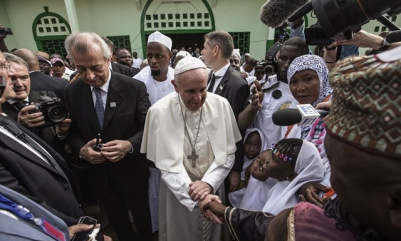 Cristianos y musulmanes somos hermanos. Tenemos que considerarnos así, comportarnos como tales. Sabemos bien que los últimos sucesos y la violencia que ha golpeado su país no tenía un fundamento precisamente religioso. Quien dice que cree en Dios ha de ser también un hombre o una mujer de paz. Cristianos, musulmanes y seguidores de las religiones tradicionales, han vivido juntos pacíficamente durante muchos años. Tenemos que permanecer unidos para que cese toda acción que, venga de donde venga, desfigura el Rostro de Dios y, en el fondo, tiene como objetivo la defensa a ultranza de intereses particulares, en perjuicio del bien común. Juntos digamos «no» al odio, «no» a la venganza, «no» a la violencia, en particular a la que se comete en nombre de una religión o de Dios. Dios es paz, Dios salam.