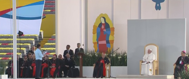 Santo Padre, me duele compartir con Usted que en diferentes puntos de país faltan oportunidades de preparación profesional y de trabajo. Algunos jóvenes somos atrapados por la desesperación y nos dejamos llevar por la avaricia, la corrupción y las promesas de una vida intensa y fácil, pero al margen de la legalidad. Aumentan entre nosotros las víctimas del narcotráfico, la violencia, de las adicciones y la explotación de personas. Muchas familias sólo han podido llorar la pérdida de sus hijos, porque la impunidad ha dado alas a quienes secuestran, estafan y matan. En medio de todo esto la paz es un don que seguimos anhelando. Santo Padre, queremos ser constructores de la paz ¿cómo lograrlo? Deseamos que nuestros seres queridos no sean afectados por la violencia ¿Cuál sería el camino? Como católicos queremos recibir la paz de Cristo y ser sus mensajeros como Usted ¿Cómo lograrlo en nuestras parroquias? Le agradezco su presencia, su palabra y su consuelo.