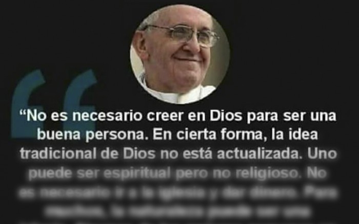 Esta frase anda circulando en muchas páginas de facebook anti-católicas. Nadie ha podido probar que el Papa Francisco haya dicho eso simplemente porque nunca lo dijo. ¿Cómo podría el Papa decir que “la idea tradicional de Dios no está actualizada”? Dios es el mismo ayer, hoy y siempre.