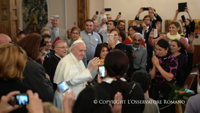 A su llegada, a las 15.45 horas (hora local), el Papa ha sido recibido por S.E. Mons. Giuseppe Pasotto, administrador apostólico del Caucaso de los Latinos, y por el Vicario. Tras la introducción del Administrador apostólico y el testimonio de un sacerdote, un seminarista, una madre de familia y un joven, el Santo Padre ha improvisado su discurso.