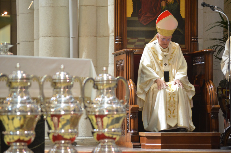 11 de abril de 2017.- El arzobispo de Madrid, cardenal D. Carlos Osoro Sierra, ha celebrado este Martes Santo por la mañana la tradicional Misa Crismal con su presbiterio, en la que «se consagra el Santo Crisma y bendice los demás óleos», manifestando así la «comunión de los presbíteros con el propio obispo» (OGMR, 203).