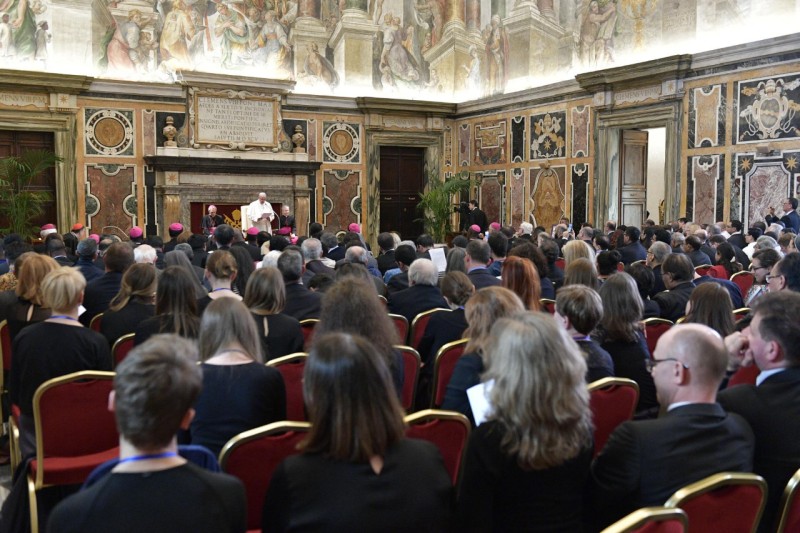 Con las palabras del apóstol Pablo, doy la bienvenida, a quienes están “en Roma, amados por Dios”, deseándoos “gracia y paz” (Rom1, 7). Doy las gracias al cardenal Tagle por el saludo que me ha dirigido en nombre vuestro . Os habéis reunido con motivo del quincuagésimo aniversario de la Federación Bíblica Católica. Este jubileo os dará la oportunidad de hacer balance de vuestro servicio eclesial y de confirmaros mutuamente en el compromiso de difundir la Palabra de Dios.