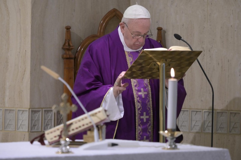 Existen tres cosas que se necesitan para hacer una verdadera oración. La primera es la fe: “Si no tienen fe…” Y muchas veces, la oración es sólo oral, de boca, pero no viene de la fe del corazón, o es una fe débil… Pensemos en otro padre, el del hijo endemoniado, cuando Jesús respondió: “Todo es posible para el que cree”; el padre, como dice claramente: “Yo creo, pero aumenta mi fe” (cf. Mc 9,23-24). La fe en la oración. Rezar con fe, tanto cuando rezamos fuera [de un lugar de culto], como cuando venimos aquí y el Señor está ahí: pero ¿tengo fe o es un hábito? Tengamos cuidado en la oración: no caigamos en el hábito sin la conciencia de que el Señor está ahí, que estoy hablando con el Señor y que Él es capaz de resolver el problema. La primera condición para la verdadera oración es la fe.