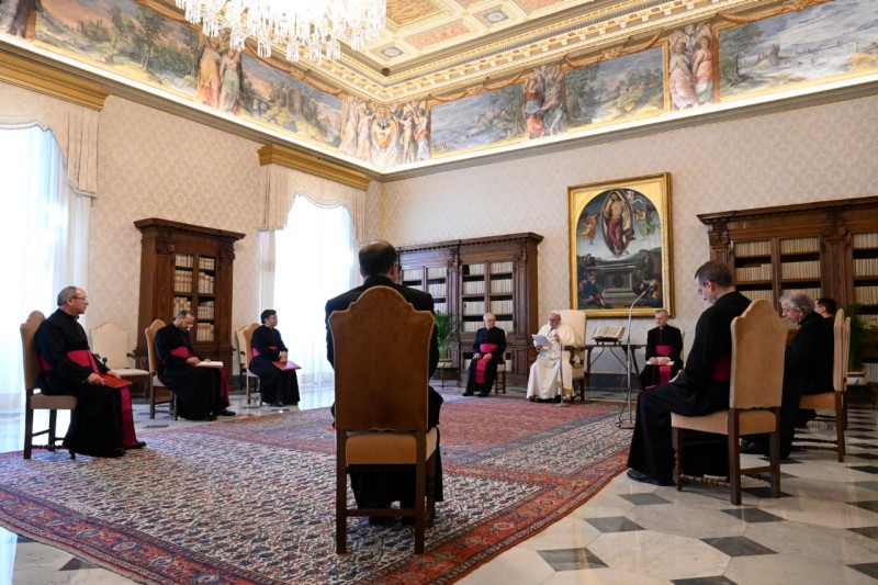 Dios dona amor, Dios pide amor. Esta es la raíz mística de toda la vida creyente. Los primeros cristianos en oración, pero también nosotros que venimos varios siglos después, vivimos todos la misma experiencia. El Espíritu anima todo. Y todo cristiano que no tiene miedo de dedicar tiempo a la oración puede hacer propias las palabras del apóstol Pablo: «La vida que vivo al presente en la carne, la vivo en la fe del Hijo de Dios que me amó y se entregó a sí mismo por mí» (Gal 2, 20). La oración te hace consciente de esto. Solo en el silencio de la adoración se experimenta toda la verdad de estas palabras. Tenemos que retomar el sentido de la adoración. Adorar, adorar a Dios, adorar a Jesús, adorar al Espíritu. El Padre, el Hijo y el Espíritu: adorar. En silencio. La oración de la adoración es la oración que nos hace reconocer a Dios como principio y fin de toda la historia. Y esta oración es el fuego vivo del Espíritu que da fuerza al testimonio y a la misión. Gracias.