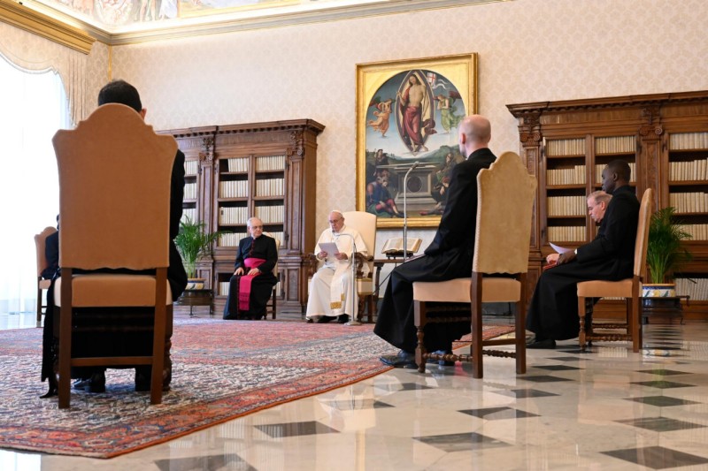 En nuestro camino de catequesis sobre la oración, hoy y la próxima semana queremos ver cómo, gracias a Jesucristo, la oración nos abre de par en par a la Trinidad —al Padre, al Hijo y al Espíritu—, al mar inmenso de Dios que es Amor. Jesús es quien nos ha abierto el Cielo y nos ha proyectado en la relación con Dios. Ha sido Él quien ha hecho esto: nos ha abierto esta relación con el Dios Trino: el Padre, el Hijo y el Espíritu Santo. Es lo que afirma el apóstol Juan, en la conclusión del prólogo de su Evangelio: «A Dios nadie le ha visto jamás: el Hijo único, que está en el seno del Padre, él lo ha contado» (1,18). Jesús nos ha revelado la identidad, esta identidad de Dios, Padre, Hijo y Espíritu Santo. Nosotros realmente no sabíamos cómo se podía rezar: qué palabras, qué sentimientos y qué lenguajes eran apropiados para Dios. En esa petición dirigida por los discípulos al Maestro, que a menudo hemos recordado durante estas catequesis, está todo el tanteo del hombre, sus repetidos intentos, a menudo fracasados, de dirigirse al Creador: «Señor, enséñanos a orar» (Lc 11,1).