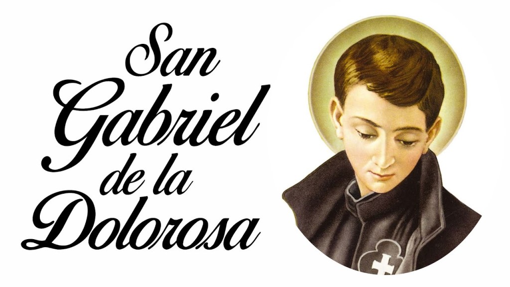 Muerto a los veinticuatro años de edad, minorista aún, después de seis años de profesión religiosa, todo el mundo mira a San Gabriel de la Dolorosa como modelo y protector de la juventud de los seminarios, noviciados y casas religiosas de estudio. Y como modelo también de admirable y sentida devoción a la Santísima Virgen María.