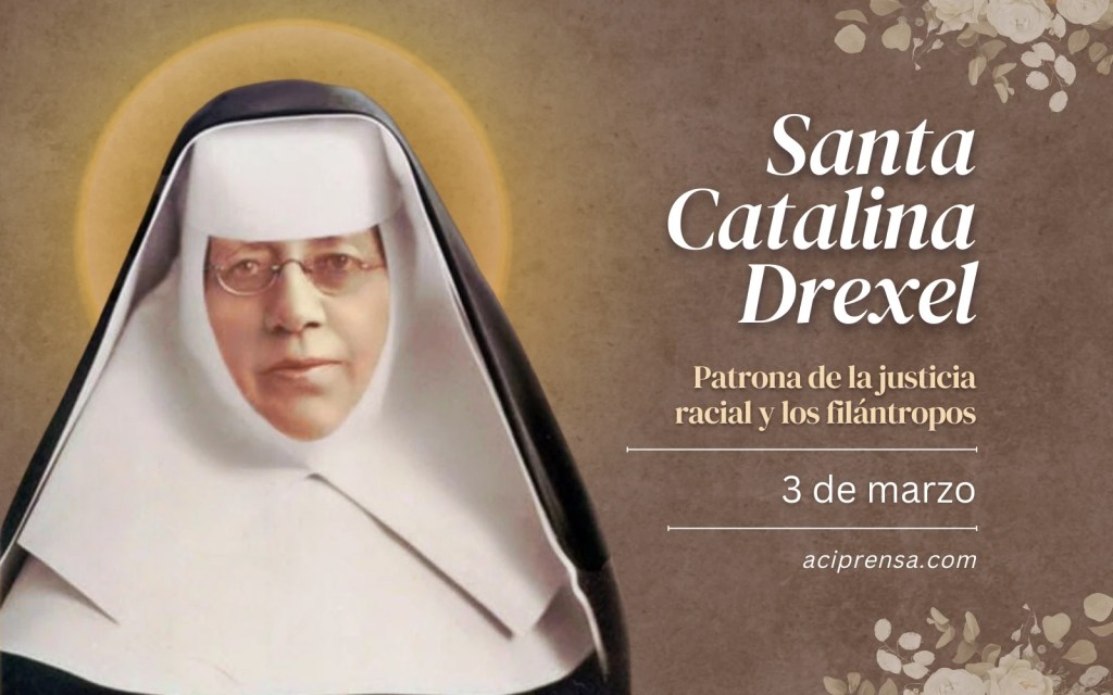 La madre Catalina María Drexel nació en una familia acomodada de Filadelfia, en los Estados Unidos. Pero aprendió de sus padres que los bienes familiares no eran sólo para ellos, sino que debían compartirlos con los menos favorecidos por la fortuna. Cuando ya era joven, quedó profundamente impresionada por la pobreza y la condición desesperada de muchos nativos americanos y afroamericanos. Y entonces comenzó a destinar sus bienes a tareas misionales y educativas entre las capas más pobres de la sociedad. Más tarde vio que se necesitaba más, y con increíble valentía y confianza en la gracia de Dios, decidió no dar sólo sus bienes, sino dar su vida entera al servicio total de Dios.