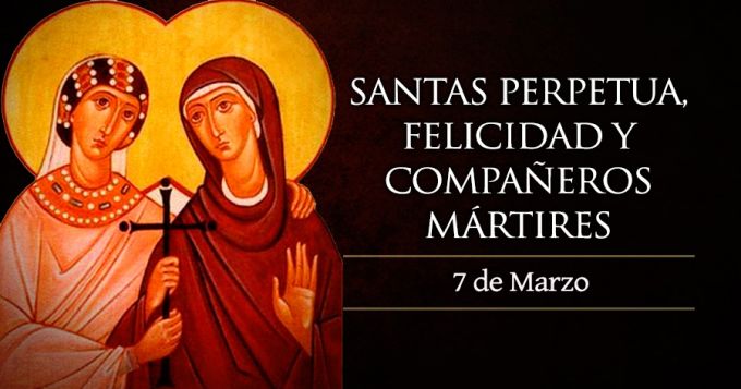 Los nombres de las Santas Perpetua y Felícitas figuran de antiguo en el canon de la misa. Habían muerto en el anfiteatro de Cartago el año 203. En el calendario filocaliano de Roma del tiempo de San Dámaso, aparece su fiesta el 7 de marzo. Después se perdió la memoria de su celebración, que a principios de este siglo restauró San Pío X. Fue con motivo de las excavaciones que se realizaban cerca de Túnez, en el emplazamiento de la vieja Cartago. Aparecieron los restos de una basílica paleocristiana y fue hallado el epitafio de estas célebres mártires. Mas como el día siete estaba ocupado por Santo Tomás de Aquino se anticipó la fiesta un día.